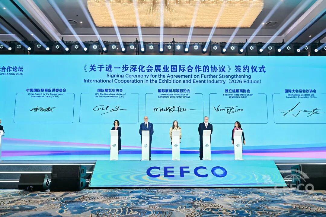 1月22日,2026年中国会展经济国际合作论坛(CEFCO 2026)在武汉光谷科技会展中心盛大开幕。本届论坛以“变革的时代:共塑链接・智创未来”为主题,由中国贸促会、国际展览业协会(UFI)、国际展览与项目协会(IAEE)、独立组展商协会(SISO)、国际大会及会议协会(ICCA)共同主办,武汉市人民政府承办,吸引了20多个国家和地区的600多位会展机构代表、行业精英及专家学者齐聚江城,共话会展业高质量发展新路径。